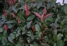红叶石楠 是蔷薇科,石楠属杂交种,为常绿小乔木或灌木,乔木高可达5米、灌木高可达2米。叶片革质,长圆形至倒卵状、披针形,叶端渐尖,叶基楔形,叶缘有带腺的锯齿,花多而密,复伞房花序,花白色,梨果黄红色,…全部>>