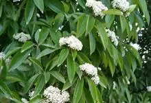 石楠 Kalkman),是蔷薇科石楠属的常绿乔木,高5~12米,株型紧凑,树冠圆球形。树枝为褐灰色;鳞片为褐色,没有毛;叶片革质,长椭圆至侧卵状椭圆形,有锯齿,新叶红色光亮。复伞房花序,白色小花,…全部>>