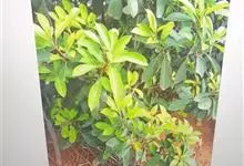 石楠 Kalkman),是蔷薇科石楠属的常绿乔木,高5~12米,株型紧凑,树冠圆球形。树枝为褐灰色;鳞片为褐色,没有毛;叶片革质,长椭圆至侧卵状椭圆形,有锯齿,新叶红色光亮。复伞房花序,白色小花,…全部>>
