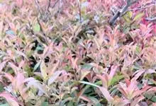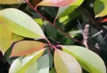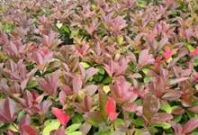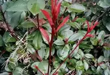 红叶石楠 是蔷薇科,石楠属杂交种,为常绿小乔木或灌木,乔木高可达5米、灌木高可达2米。叶片革质,长圆形至倒卵状、披针形,叶端渐尖,叶基楔形,叶缘有带腺的锯齿,花多而密,复伞房花序,花白色,梨果黄红色,…全部>>