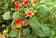 覆盆子为灌木,高1—2米;枝褐色或红褐色,幼时被绒毛状短柔毛,疏生皮刺。小叶3-7枚,长卵形或椭圆形,顶生小叶常卵形,有时浅裂,顶端短渐尖,基部圆形,顶生小叶基部近心形,上面无毛或疏生柔毛,…全部>>