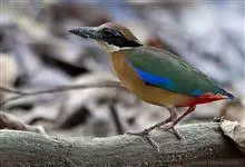 蓝翅八色鸫是雀形目八色鸫科的鸟类。体长17-20厘米,体重类约48-70克,体型圆胖,尾短,腿长,以身体具有红、绿、蓝、白、黑、黄、褐、栗等鲜艳夺目,丰富艳丽的色彩而得名,是很有观赏价值的鸟类。主要…全部>>