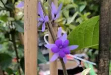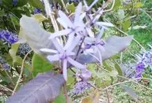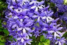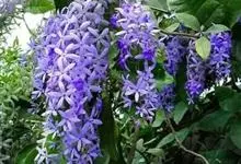 蓝花藤是马鞭草科、蓝花藤属木质藤本,长达5米,叶对生,革质,触之粗糙,椭圆状长圆形或卵状椭圆形,总状花序顶生,下垂,花蓝紫色,花期4-5月。 蓝花藤原产古巴,…全部>>