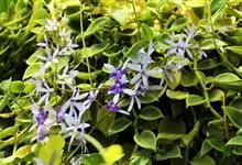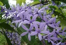 蓝花藤是马鞭草科、蓝花藤属木质藤本,长达5米,叶对生,革质,触之粗糙,椭圆状长圆形或卵状椭圆形,总状花序顶生,下垂,花蓝紫色,花期4-5月。 蓝花藤原产古巴,…全部>>