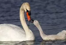 疣鼻天鹅:是鸟纲、鸭科、天鹅属的一种大型的游禽,体长1.2-1.5米,体重6.75-10千克。脖颈细长,前额有一块瘤疣的突起,因此得名。全身羽毛洁白。在水中游泳时,颈部弯曲而略似“S“形。…全部>>