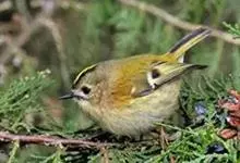 戴菊小型鸟类,体长9~10厘米。上体橄榄绿色。头顶中央柠檬黄色或橙黄色羽冠,两侧有明显的黑色侧冠纹,眼周灰白色。腰和尾上覆羽黄绿色,两翅和尾黑褐色,尾外翈羽缘橄榄黄绿色,初级和次级飞羽羽缘淡黄绿色,…全部>>