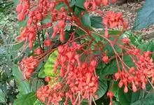 赪桐 Sweet)是唇形科、大青属灌木,高1-4米,叶片圆心形,顶端尖或渐尖,基部心形,边缘有疏短尖齿,表面疏生伏毛,二歧聚伞花序组成顶生,大而开展的圆锥花序,花序的最后侧枝呈总状花序,花萼红色,…全部>>