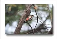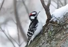 小斑啄木鸟,是啄木鸟科、啄木鸟属的小型鸟类,体长14-18厘米。额和颊白色,头顶雄鸟红色,雌鸟黑色。后颈至上背黑色,下背白色而具黑色横斑。两翅黑色具白色横斑。尾黑色,外侧尾羽具白色横斑。下体灰白色,…全部>>