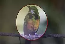 绿拟啄木鸟为鴷形目,须科,拟啄木属的一种。形较大拟啄木鸟略小,体长约260mm。头、颈及胸浅褐而具淡黄白色条纹;喉几为淡黄白色;身体余部草绿色。虹膜棕褐色,眼周裸露部黄色;嘴峰角黄色;跗跖和趾角黄…全部>>