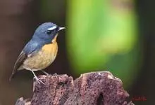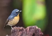 棕胸蓝姬鹟:属小型鸣禽,体长10-13厘米,体重6-10克,是一种体型很小的灰蓝及棕色鹟,雌雄羽色不同,雄鸟羽色艳丽,雌鸟羽色暗淡。雄鸟上体深蓝色,胸橙黄色,下腹灰白色。亚成鸟具褐色斑驳。…全部>>