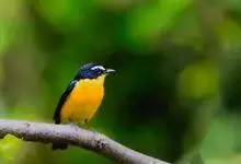 白眉姬鹟是小型鸟类,体长11-14厘米。雄鸟上体大部黑色,眉纹白色,在黑色的头上极为醒目。腰鲜黄色,两翅和尾黑色,翅上具白斑。下体鲜黄色。雌鸟上体大部橄榄绿色。腰鲜黄色,翅上亦具白斑。下体淡黄绿色。…全部>>