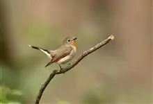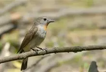 红喉姬鹟小型鸟类,体长11~13厘米。雄鸟上体灰黄褐色,眼先、眼周白色,尾上覆羽和中央尾羽黑褐色,外侧尾羽褐色,基部白色。颏、喉繁殖期间橙红色,胸淡灰色,其余下体白色,非繁殖期颏、喉变为白色。…全部>>