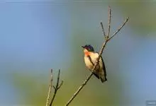 红胸啄花鸟:体重5-10克,体长60-92毫米。体形纤小。雄鸟上体呈辉亮的金属绿色;下体棕黄,胸部具一朱红色块斑,极易与其他啄花鸟区别。雌鸟上体呈橄榄绿,下体棕黄色。虹膜褐色,嘴褐黑色或角灰色,…全部>>