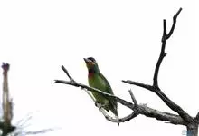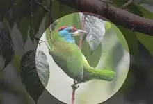 金喉拟啄木鸟,是须鴷科、拟啄木鸟属的鸟类。金喉拟啄木鸟为小型鸟类,体长19-24厘米。额深红色,头顶金黄色,后枕具一大块深红色斑,耳羽和头侧银灰色,上体草绿色,颏和上喉金黄色,下喉淡银灰色,…全部>>