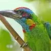 黑眉拟啄木鸟,为须䴕科、拟啄木鸟属的小型鸟类,体长20-25厘米,外形和金喉拟啄木鸟非常相似,但具粗著的黑色眉纹,头侧和耳覆羽以及下喉蓝色而不为银灰色,前颈两侧各有一块鲜红色斑。全部>>