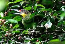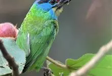 绿拟啄木鸟为鴷形目,须科,拟啄木属的一种。形较大拟啄木鸟略小,体长约260mm。头、颈及胸浅褐而具淡黄白色条纹;喉几为淡黄白色;身体余部草绿色。虹膜棕褐色,眼周裸露部黄色;嘴峰角黄色;跗跖和趾角黄…全部>>