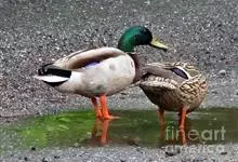 绿头鸭属游禽,大型鸭类。体长47-62厘米,体重大约1千克,外形大小和家鸭相似。雄鸟嘴黄绿色,脚橙黄色,头和颈辉绿色,颈部有一明显的白色领环。上体黑褐色,腰和尾上覆羽黑色,两对中央尾羽亦为黑色,且向…全部>>