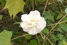 木芙蓉,锦葵科木槿属落叶灌木或小乔木。小枝上有细绒毛;叶片为卵状心形,托叶为披针形,常早落;花单生,花萼为钟形,花冠初为白色或淡红色,后逐渐变为深红色;果实为扁球形,有淡黄色的毛附着。花期8到10月。…全部>>