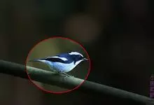 小仙鹟:体长11-13厘米,是一种深色鹟。雄鸟深蓝,脸侧及喉黑,臀白,前额、颈侧及腰为闪辉蓝色。与大仙鹟的区别在体型较小,胸蓝色,臀白色。雌鸟褐色,翼及尾棕色,颈侧具闪辉蓝色斑块,喉皮黄,项纹浅皮黄。…全部>>