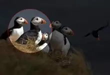 角嘴海雀,是海雀科、角嘴海雀属的中型海鸟,体长32-41厘米,嘴短而粗呈圆锥状、橙色。夏羽上嘴基部有一个三角形的突出物,形状如角。头两侧各有两条由白色丝状饰羽组成的纵带,分别位于眼上和眼下后方的头侧…全部>>