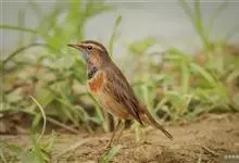 蓝点颏亦称“蓝喉歌鸲”,通称蓝靛颏儿。身体大小和麻雀相似,体长12-13厘米,体重17-18克。头部、上体主要为土褐色。眉纹白色。尾羽黑褐色,基部栗红色。颏部、喉部辉蓝色,下面有黑色横纹。下体白色。…全部>>
