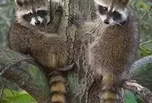浣熊:食肉目、浣熊科的一种哺乳动物,成年体长40-65厘米,尾长20-40厘米,体重4-10千克,雄性稍大于雌性。体型较小。面部有黑色眼斑,形象滑稽,绰号“蒙面大盗”;尾部有5到7条黑白相间的环纹。…全部>>