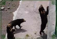 马来熊,是食肉目熊科马来熊属哺乳动物。体胖颈短,眼睛和耳朵小;头部短圆;全身乌黑光滑;鼻唇周为棕黄色,裸露无毛;眼圈为灰褐色,趾基部连有短蹼;胸斑中央有一个毛旋,颈部周围的一圈皮肤极松弛,…全部>>