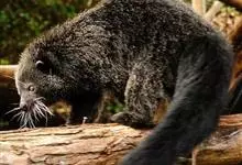 熊狸别名熊灵猫,为灵猫科下的第二大物种。貌似小黑熊,长着一条与身长差不多长的粗壮尾巴。其体毛黑色蓬松,杂有浅棕黄色。耳端的簇毛长达5厘米,耳缘白色。四肢粗壮,…全部>>