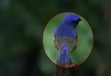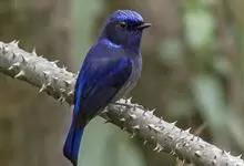 小仙鹟:体长11-13厘米,是一种深色鹟。雄鸟深蓝,脸侧及喉黑,臀白,前额、颈侧及腰为闪辉蓝色。与大仙鹟的区别在体型较小,胸蓝色,臀白色。雌鸟褐色,翼及尾棕色,颈侧具闪辉蓝色斑块,喉皮黄,项纹浅皮黄。…全部>>