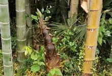 龟甲竹 Mitford),竿高达20余米,粗者可达20余厘米,幼竿密被细柔毛及厚白粉,箨环有毛,老竿无毛,并由绿色渐变为绿黄色;基部节间甚短而向上则逐节较长;竿环不明显,低于箨环或在细竿中隆起。…全部>>
