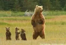 棕熊是熊科熊属哺乳动物。体形健硕,肩背隆起,身后长有一条短尾。毛色多为棕褐色或棕黄色;老年呈银灰色;幼年为棕黑色。野生条件下寿命为20—30年。棕熊分布广泛,主要分布在欧亚大陆和北美,…全部>>