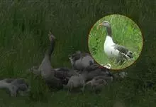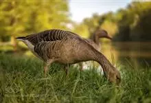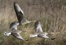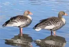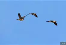 灰雁:体长70-90厘米,翼展147-182厘米,体重2.5-4千克,寿命17年。体大而肥胖。嘴、脚肉色,上体灰褐色,下体污白色,飞行时双翼拍打用力,振翅频率高。脖子较长。腿位于身体的中心支点,…全部>>