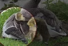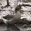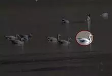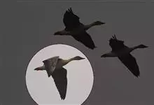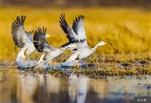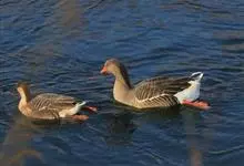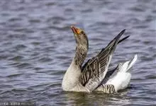 灰雁:体长70-90厘米,翼展147-182厘米,体重2.5-4千克,寿命17年。体大而肥胖。嘴、脚肉色,上体灰褐色,下体污白色,飞行时双翼拍打用力,振翅频率高。脖子较长。腿位于身体的中心支点,…全部>>