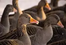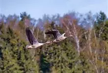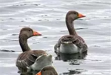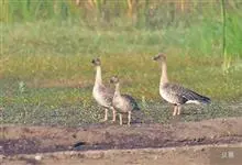 灰雁:体长70-90厘米,翼展147-182厘米,体重2.5-4千克,寿命17年。体大而肥胖。嘴、脚肉色,上体灰褐色,下体污白色,飞行时双翼拍打用力,振翅频率高。脖子较长。腿位于身体的中心支点,…全部>>