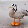 斑头雁是雁形目鸭科雁属鸟类,又称白头雁、黑纹头雁。通体大都灰褐色,头和颈侧白色,头顶有两道黑色带斑;虹膜暗棕色,嘴橙黄色,嘴甲黑色,脚和趾橙黄色;背部淡灰褐色,羽端缀有棕色,形成鳞状斑;颏、喉污白色,…全部>>