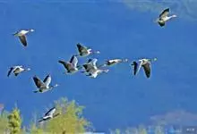 加拿大黑雁共有11个亚种,为鸭科黑雁属的鸟类。中等体型,为典型的冷水性海洋鸟,耐严寒,喜栖于海湾、海港及河口等地。飞行时有时呈斜线飞行,有时呈“V”字形,很不规则。主要以青草或水生植物的嫩芽、叶、茎…全部>>