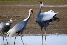 白头鹤,是鹤形目鹤科鹤属动物。白头鹤为大中型涉禽,体形较丹顶鹤小,体长90~97厘米,除头部和颈的上部为白色外,其余各部羽毛均为灰色;眼先至额部为黑色,头顶上的皮肤裸露无羽毛,呈鲜红色、虹膜深褐色,…全部>>