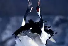 丹顶鹤:是鹤科、鹤属的一种大型涉禽,体长120-160厘米。颈、脚较长,通体大多白色,头顶鲜红色,喉和颈黑色,耳至头枕白色,脚黑色,站立时颈、尾部飞羽和脚黑色,头顶红色,…全部>>