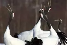 丹顶鹤:是鹤科、鹤属的一种大型涉禽,体长120-160厘米。颈、脚较长,通体大多白色,头顶鲜红色,喉和颈黑色,耳至头枕白色,脚黑色,站立时颈、尾部飞羽和脚黑色,头顶红色,…全部>>