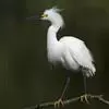 雪鹭:全身洁白的羽毛,颈背有丝状蓑羽。有一双亭亭玉立黄色长腿和一个黑色的鸟喙。在繁殖季节,鼻孔和眼睛之间的区域会由黄色变成红色。幼鸟类似成鸟,喙基略苍白,腿有背部绿色。嘴长而尖直,翅大而长,脚和趾均…全部>>
