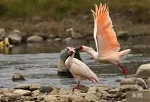 朱鹮是鹈形目鹮科朱鹮属的鸟类动物。其雄鸟通体白色,羽干及两翅与尾等均沾染粉红色;颈项上有很多长矛状羽毛,形成羽冠,耸立时非常夺目;嘴长而向下曲,呈黑色,先端朱红,脚的裸露部分亦呈亮红色。雌鸟羽色略同,…全部>>