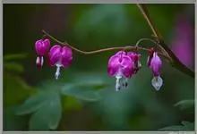 荷包牡丹 Fukuhara),是罂粟科荷包牡丹属的多年生草本植物,株高30-60厘米,具肉质根状茎;茎直立呈圆柱形;叶二回三出全裂,状似牡丹叶;总状花序顶生,基部为心形,花瓣紫红色至粉红色,稀白色,…全部>>