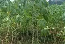 木薯,为大戟科木薯属的一种直立灌木,又名木番薯、树薯。木薯高1.5-3米;块根圆柱状。叶纸质,轮廓近圆形;裂片倒披针形至狭椭圆形;托叶三角状披针形。圆锥花序顶生或腋生,花萼带紫红色且有白粉霜。…全部>>