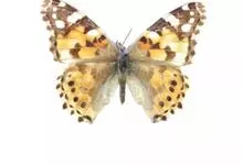 荨麻蛱蝶:共有10个亚种。翅展4.5-5厘米。翅面黄褐或红褐色,斑纹黑或黑褐色,前翅外缘齿状,翅端呈镰形,外缘有一黑褐色宽带,顶角内侧有一白斑,中室内外及其下方各有1黑色斑纹。…全部>>