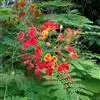 洋金凤 Sw.),豆科小凤花属灌木状或小乔木植物,枝无毛,绿或粉绿色;二回羽状复叶;总状花序伞房状,萼片无毛,花瓣橙红或黄色,圆形,花丝红色,子房无毛,花柱橙黄色;荚果窄而薄,…全部>>