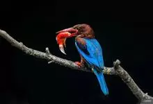 笑翠鸟,是翠鸟科笑翠鸟属的一种食鱼鸟,体长42-46厘米,嘴长8-10厘米,体重500克。是翠鸟家族中和大鱼狗同为体形最大的两种翠鸟之一。以其鸣声似狂笑而得名。笑翠鸟有一个白色的大脑袋,头顶有小棕帽。…全部>>