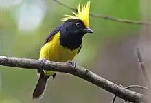 冕雀:共有4个亚种。体长20-21厘米,体重34-49克。具蓬松的黄色长型冠羽。雌鸟似雄鸟,但喉及胸深橄榄黄色,上体沾橄榄色。不会被误认的体大的黄色及黑色山雀。混群栖于原始林及次生林的林冠层,…全部>>