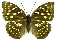 大紫蛱蝶为大型蝶种,翅展约86~110mm。翅紫黑色,有白色斑点点缀其中,雄蝶的翅具强烈紫色虹彩,其余部分暗褐色,后翅臀角具粉色斑。雌蝶体型较大,但是没有蓝紫金属光泽。原产于东亚的蝶类。…全部>>