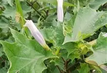 洋金花是茄科曼陀罗属植物,一年生草本植物,全株近于无毛。茎直立,圆柱形,高30~100cm,基部木质化,上部呈义状分枝。叶互生,上部的叶近于对生;叶柄长2~6cm,表面被疏短毛;叶片卵形、长卵形或心形,…全部>>