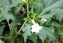 曼陀罗,茄科曼陀罗属一年生大型草本植物,全株光滑。有臭气;叶呈广卯形,边缘具不规则波状浅齿裂;花单生于枝杖间或叶腋,直立,有短梗;花萼是筒状裂片三角形,颜色为白色或淡紫色;果实为蒴果卵状,…全部>>